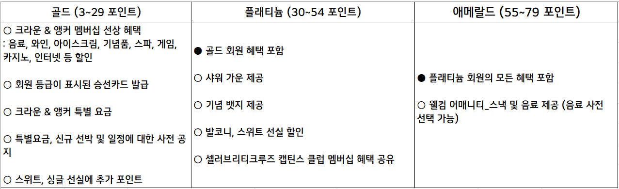[참고사항] 멤버십 신청 및 적립은 크루즈 탑승일로부터 1년 이내에 가능합니다.
