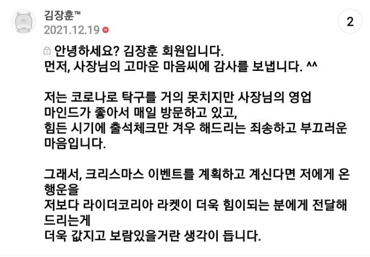 작성자허니유니 작성시간 21.12.26 참으로 훈훈한 연말이네요.~