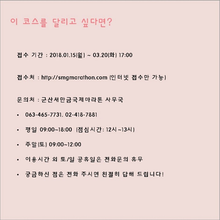 군산새만금 국제마라톤 사무국 ☎ 063-465-7731, 02-418-7881