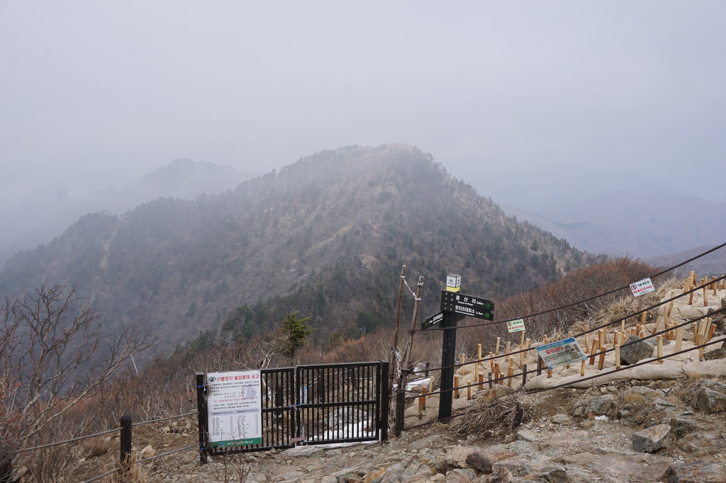 천신만고 깔딱고개 오르듯 능선에 오르면 중청봉 쪽으로 대문으로 잠궈 길을 막았으니 목적이 무엇이든 씁슬하다.