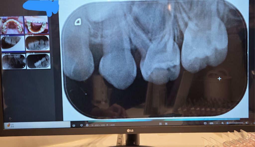 일단 동네 어린이치과에서 엑스레이를 찍은 후 부탁해 사진을 받아 왔습니다.