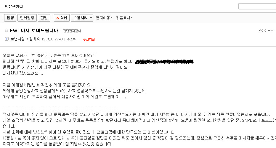 매일 조금씩 산책을 하고 있긴 했지만, 아무래도 운동을 안해봤던지라 좀더 체계적이고 임신중과 출산에 도움이 될만한 요가학원을 찾던 중, SNPE요가 프로그램을 접하게 되었습니다.