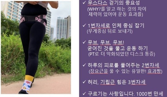 · 1주 평균 운동횟수(일) : 도구 이완 매일, 운동은 주 3회 이상· 운동목표 : 통증 타파 및 다이어트