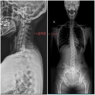 그 전에 병원에서도 몇 번 찍었었는데, 나의 엑스레이 사진을 이렇게 꼼꼼히 본것은 처음이었습니다. 나름 운동을 해왔었기 때문에 기대를 했었는지, 엑스레이의 비뚤어진 모습은 충격적이었습니다.