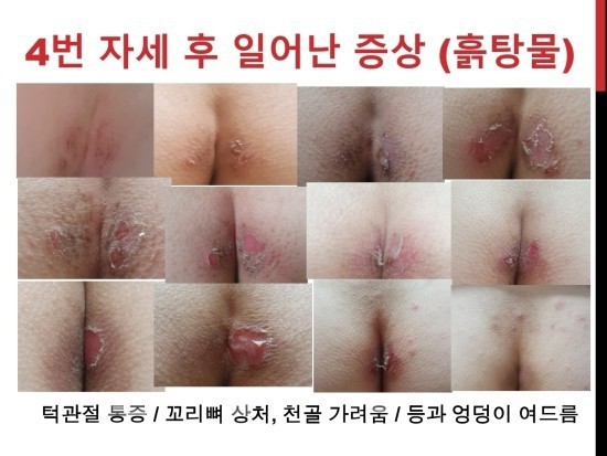 3. 피부트러블 - 천골과 등에 엄청난 뾰루지가 생겼다. 특히 천골에는 가려움증까지 동반하여 대왕 뾰루지가 계속 생겼고 아직도 진행중이다. 천골 가려움증 때문에 밤에 잠도 못자고 깬적도 있다.