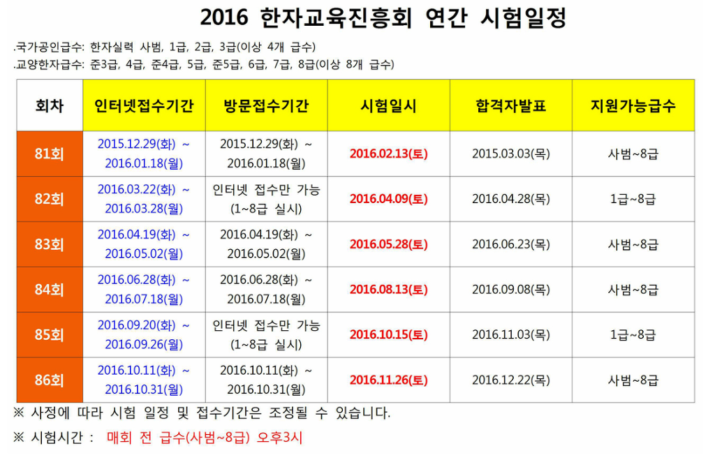 2016년 진흥회 한자시험은 2회 남았습니다.