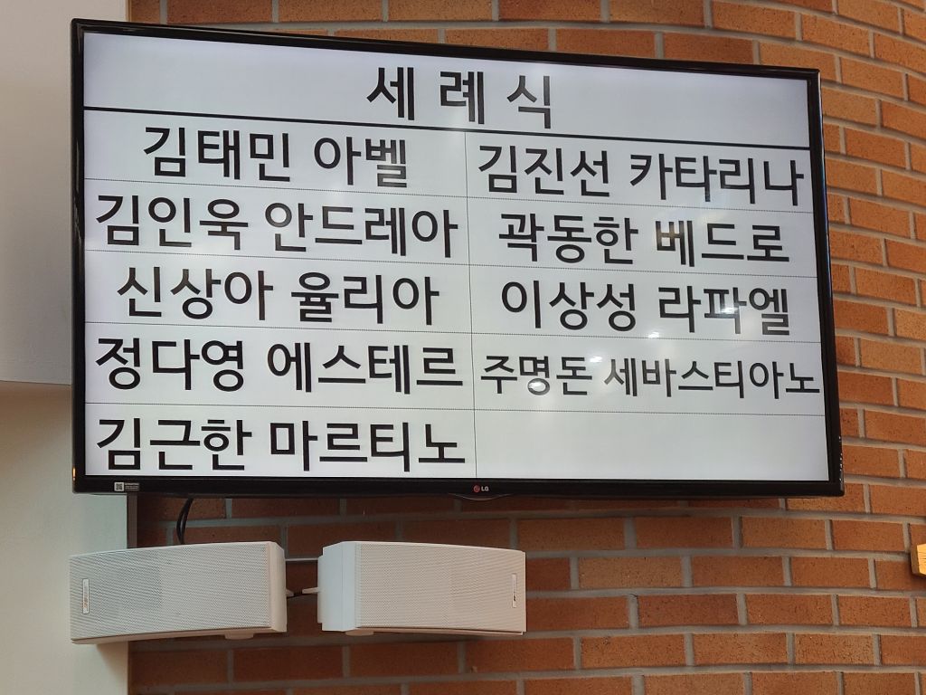 성탄대축일낮미사/세례식/밥나눔 행사 작성자김재선(문우 요한)|작성시간24.12.25|조회수152 목록 댓글 0 글자크기 작게가 글자크기 크게가 다음검색 현재 게시글 추가 기능 열기 북마크 공유하기 신고 센터로 신고 댓글 댓글 0 댓글쓰기 답글쓰기 댓글 리스트