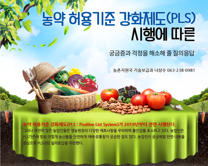 - 해당 작물의 병해충 방제용으로 등록된 농약만 사용하고, 사용방법·시기·횟수 등 안전사용기준을 지킨다면 PLS 도입과 상관없이 언제나 적합하고 안전한 농산물을 생산할 수 있다.