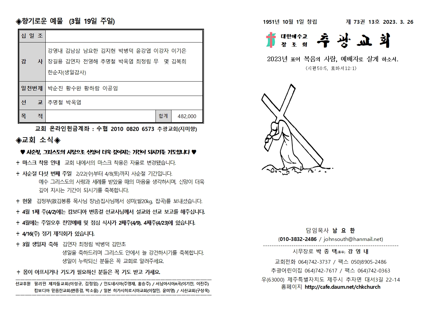 2023.03.26 교회소식 작성자남요한 목사|작성시간23.03.25|조회수30 목록 댓글 0 글자크기 작게가 글자크기 크게가 다음검색 현재 게시글 추가 기능 열기 북마크 공유하기 신고 센터로 신고 댓글 댓글 0 댓글쓰기 답글쓰기 댓글 리스트
