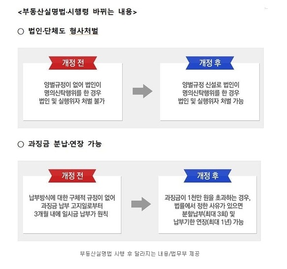 6. 법인의 부동산 차명거래에 대한 형사처벌 규정이 이달 7일부터 시행됨
