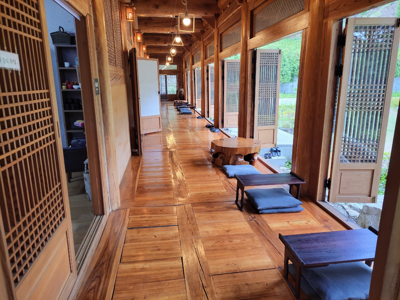 피노키오 자연휴양림 내에는 한옥숲카페가 있었습니다. 몇번은 잔디마당만 밟았었는데 이번에는 한옥숲카페를 이용할 수 있도록 후원자가 있었습니다.
