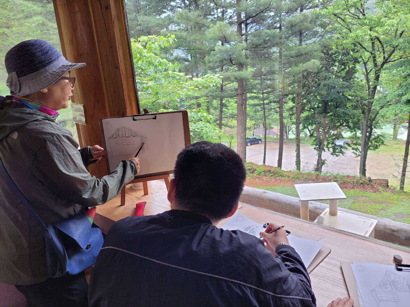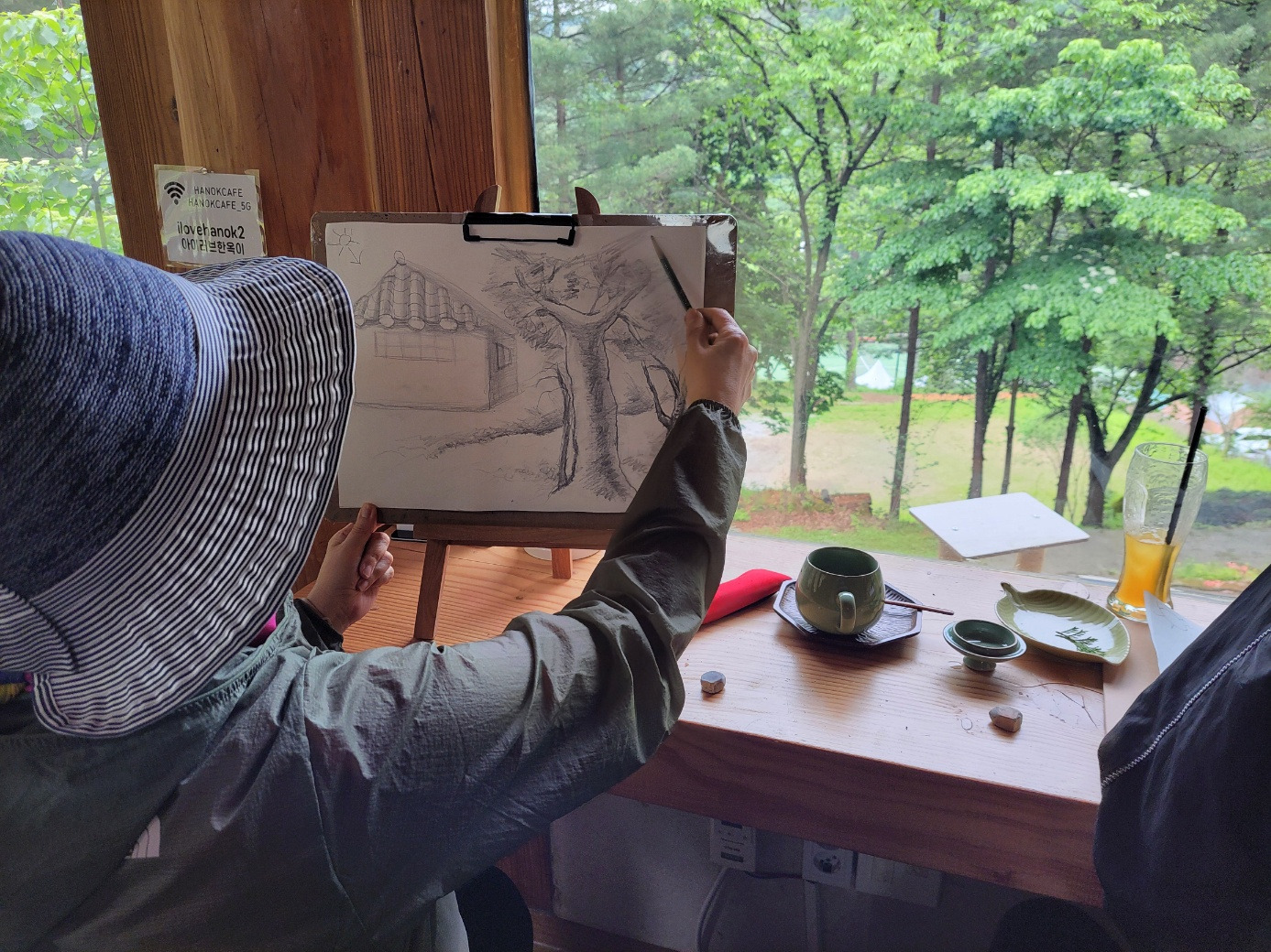 고객의 입장에서 자연스럽게 카페로 들어가 자리를 잡고 그림을 그리는 시간을 가졌습니다.