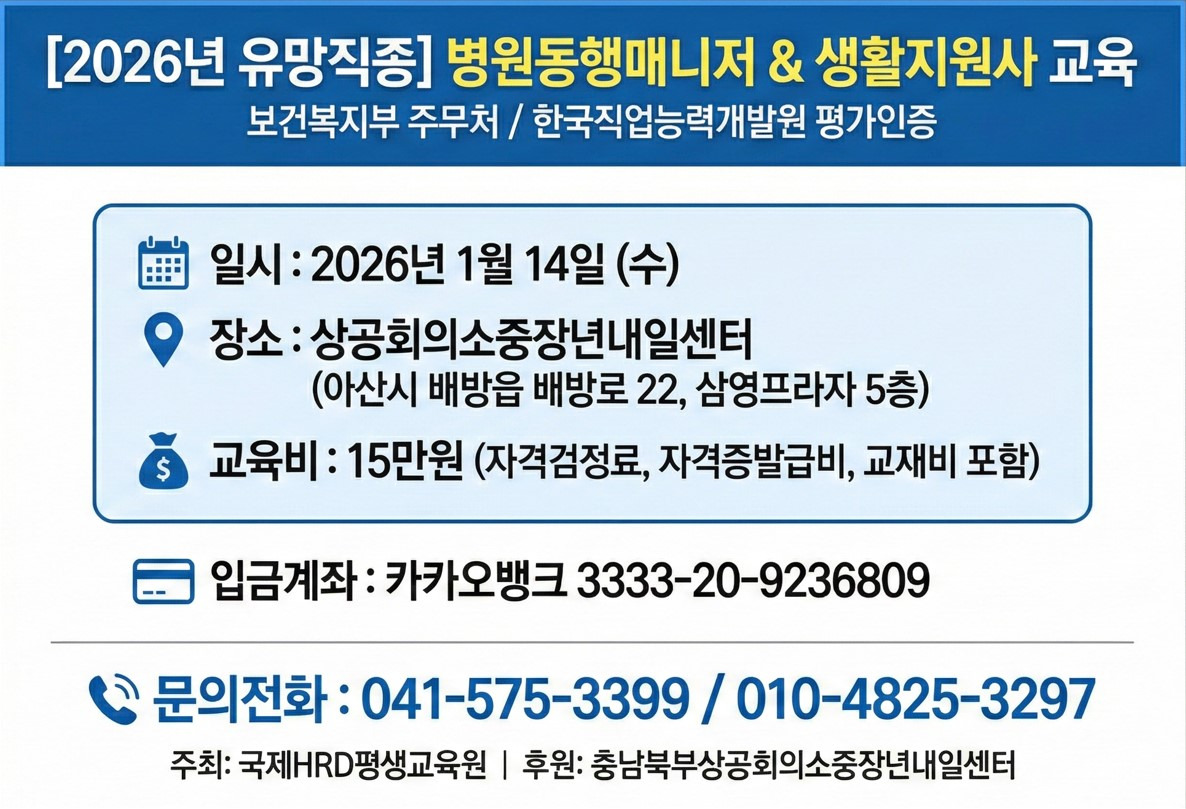 병원동행매니저/생활지원사 (교육) 작성자민들레|작성시간25.12.29|조회수7 목록 댓글 0 글자크기 작게가 글자크기 크게가 다음검색 현재 게시글 추가 기능 열기 북마크 공유하기 신고 센터로 신고 댓글 댓글 0 댓글쓰기 댓글 리스트
