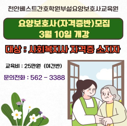 요양보호사(사회복지사반)3월10일개강 작성자민들레|작성시간26.02.13|조회수7 목록 댓글 0 글자크기 작게가 글자크기 크게가 다음검색 현재 게시글 추가 기능 열기 북마크 공유하기 신고 센터로 신고 댓글 댓글 0 댓글쓰기 댓글 리스트