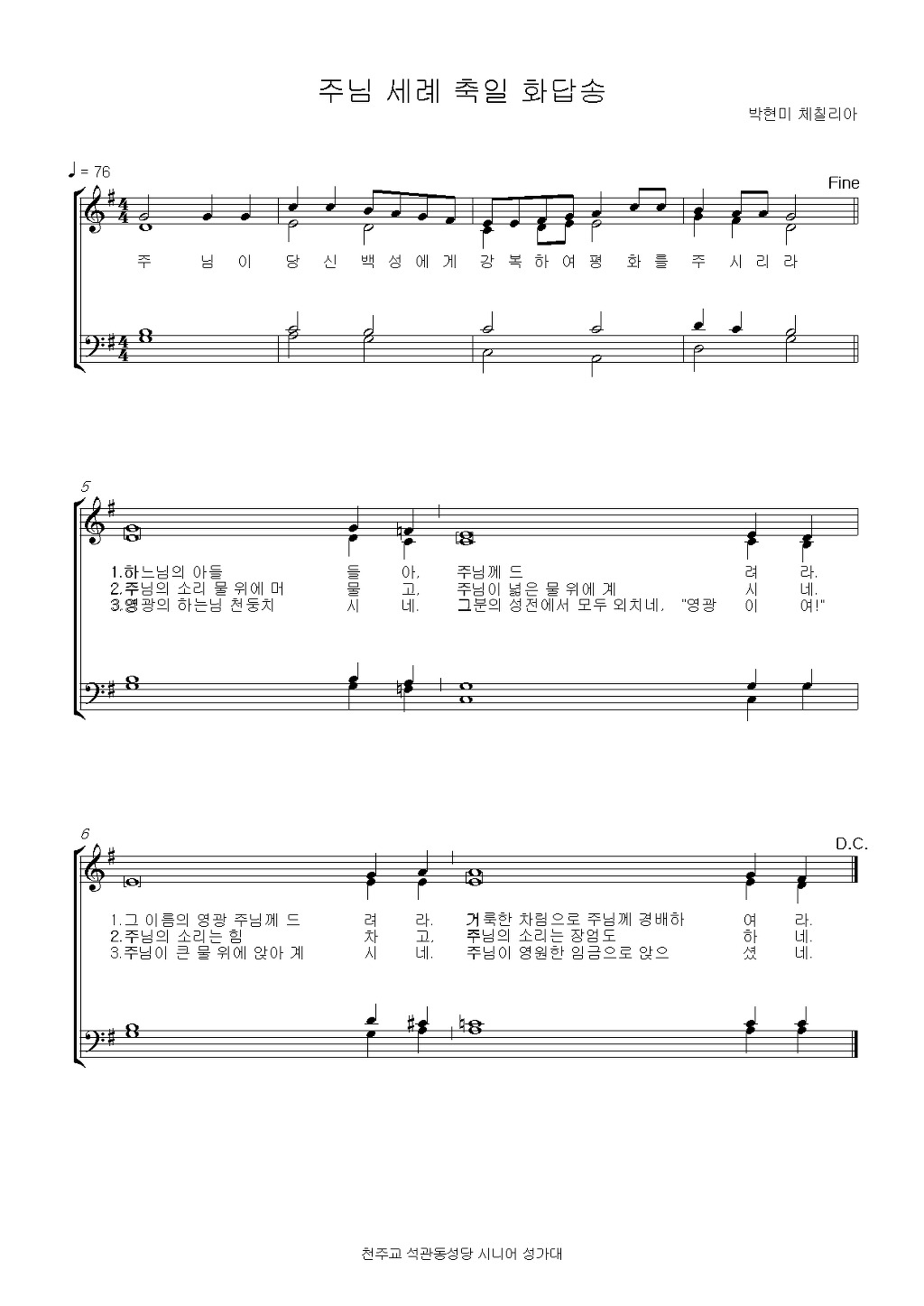 주님 세례 축일 화답송 작성자요한|작성시간10.12.29|조회수17 목록 댓글 0 글자크기 작게가 글자크기 크게가 <4성부><소프라노><알토><테너><베이스> [다른 파트를 들으실 때는 꼭 'ㅁ' 버튼을 클릭하시고 난 다음 원하시는 파트를 눌러주셔요!] 다음검색 현재 게시글 추가 기능 열기 북마크 공유하기 신고 센터로 신고 댓글 댓글 0 댓글쓰기 답글쓰기 댓글 리스트