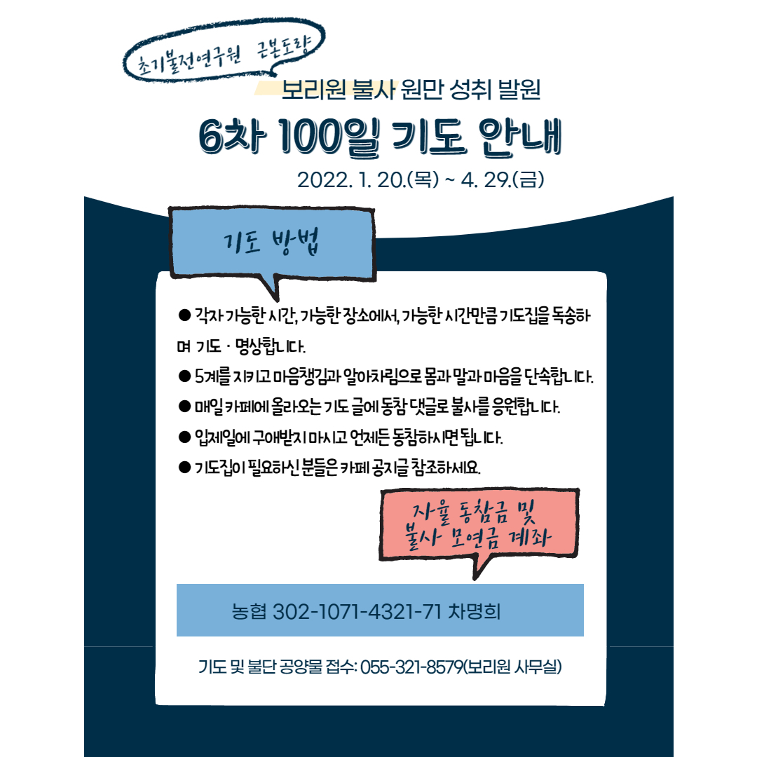 보리원 불사 원만 성취 기원 5차 100일 기도 회향 및 6차 기도 입재 안내 작성자봄 봄(수단따)|작성시간22.01.11|조회수354 목록 댓글 14 글자크기 작게가 글자크기 크게가 불사 100일 기도 신청 바로가기자율동참금 입금 계좌: 농협 차명희 302-1071-4321-71 빠알리 예불문 및 백일 기도 독송집 (6차).hwp686.00KB 첨부파일첨부된 파일이 3개 있습니다. jpg 파일 001.jpg 다운로드 jpg 파일 002.jpg 다운로드 hwp 파일 빠알리 예불문 및 백일 기도 독송집 (6차).hwp 다운로드 다음검색 현재 게시글 추가 기능 열기 북마크 공유하기 신고 센터로 신고 댓글 댓글 14 댓글쓰기 답글쓰기 댓글 리스트 작성자자나난다 | 작성시간 22.01.12 사두 사두 사두_()_ _()_ _()_ 작성자아누붓다(香那) | 작성시간 22.01.12 사두 사두 사두_()_ _()_ _()_ 작성자말리까 | 작성시간 22.01.12 그 동안 기도문 동참 법우님들께 감사드립니다.^^사두 사두 사두_()_()_()_ 작성자까말라 | 작성시간 22.01.12 사~두 사~두 사~두! 작성자수마나 (무량심) | 작성시간 22.01.16 사두 사두 사두 ()()() 댓글 전체보기