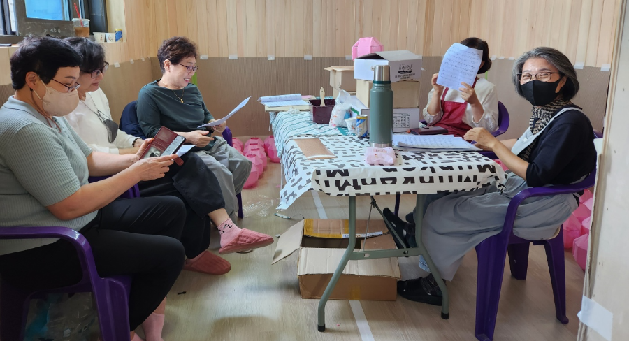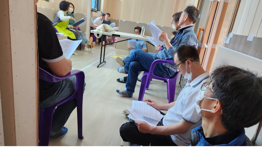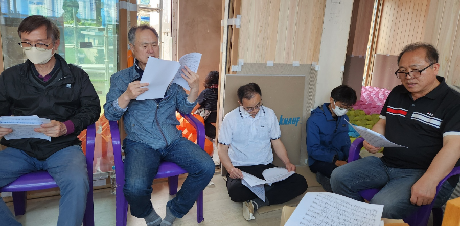 작업대를 정리하고 각자 편한 위치에서 준비된 음원을 틀어놓고 수 차례 연습,