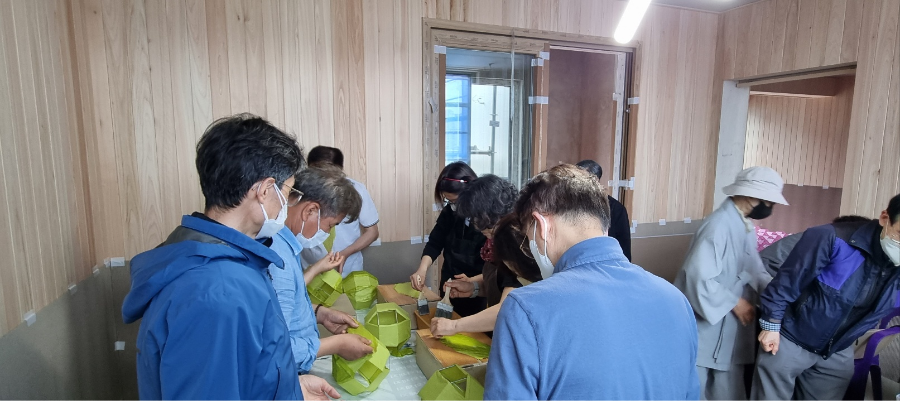 도명스님과 대부분의 법우님들이 등살 붙이기를 배우고 익히는 모습입니다.