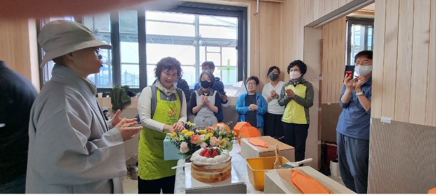 메따 고문님께서 축하케익과 선물을, 회장님께서 꽃바구니를 준비해주셨습니다.