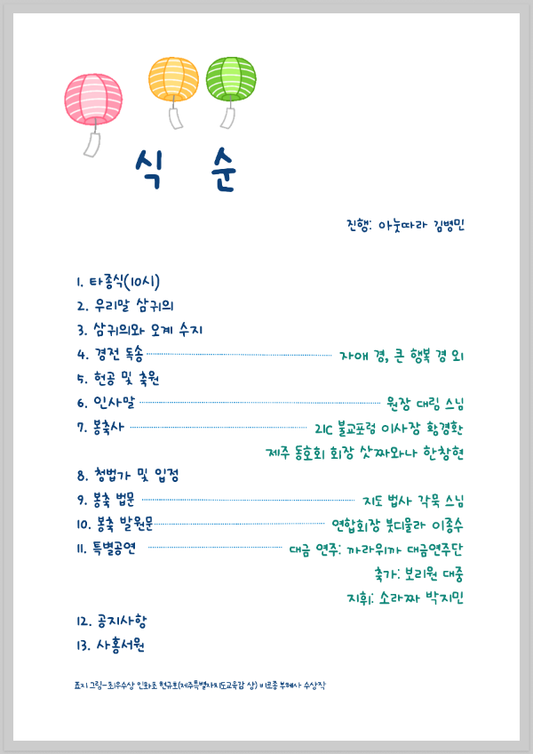 올해는 특별히 우리말 삼귀의를 추가하였습니다.