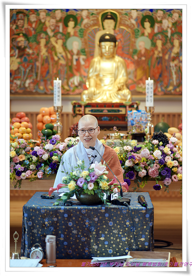 살짝 잠긴 듯, 떨리는 듯한 음성으로 보리원 새법당에서 봉축법회를 열게된 환희로움을 표하셨고