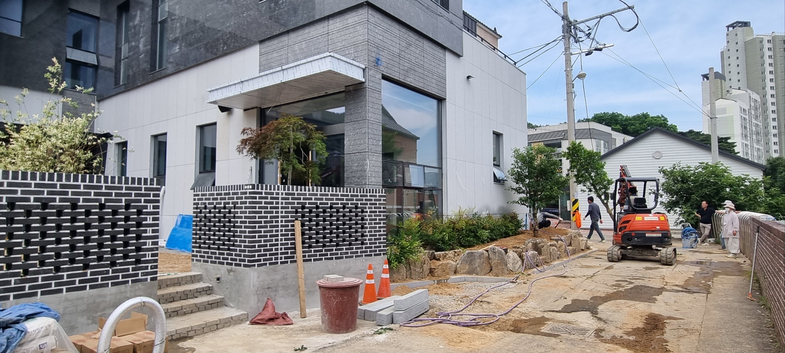 준공수라고 불린다는데 준공검사에 필수사항인 조경구간 내 나무를 심는 날입니다.