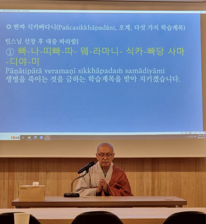 삿짜와나회장님 목탁에 맞춰 삼귀의 붓다완다나와 오계수지문을 낭독하고, 언제 읽어도 편안하고 가슴 울리는 자애경과 큰 행복경 합송에 이어 아나빠나싸띠 명상을 하고, 지난 한달여간 법우님들 근황을 공유하는 시간을 가졌습니다.