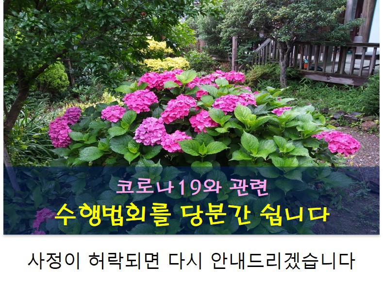 당분간 보리원 수행법회는 쉬고, 법우님들 각자 집에서 꾸준히 해 나가시기 바랍니다.