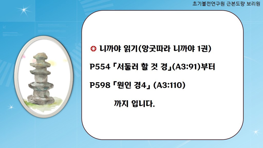 벌써 1년이 지나서 니까야강독1권, 니까야강독2권 회향에 이어