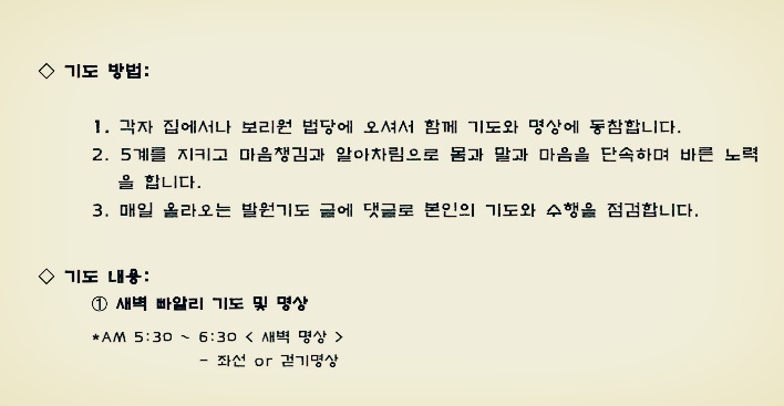 (21일 이후에도 계속 각 가정내에서 기도하시면 됩니다.)