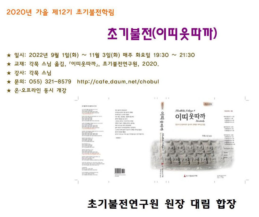 작성자초불 작성시간 20.08.18 좋은 글과 좋은 사진으로 <2020년 가을 제12기 초기불전학림> 개강 준비 소식을 올려주신