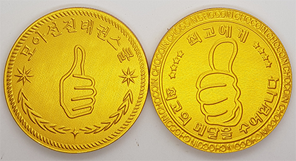 여러곳에 태권도 도장에서 금메달 초콜릿을 만들어 갔다