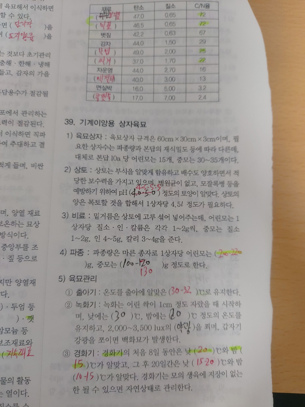 원예학에서 주로 나오는 파트들 (중요한 부분 또는 기출내용은 빨간내용으로 표시)