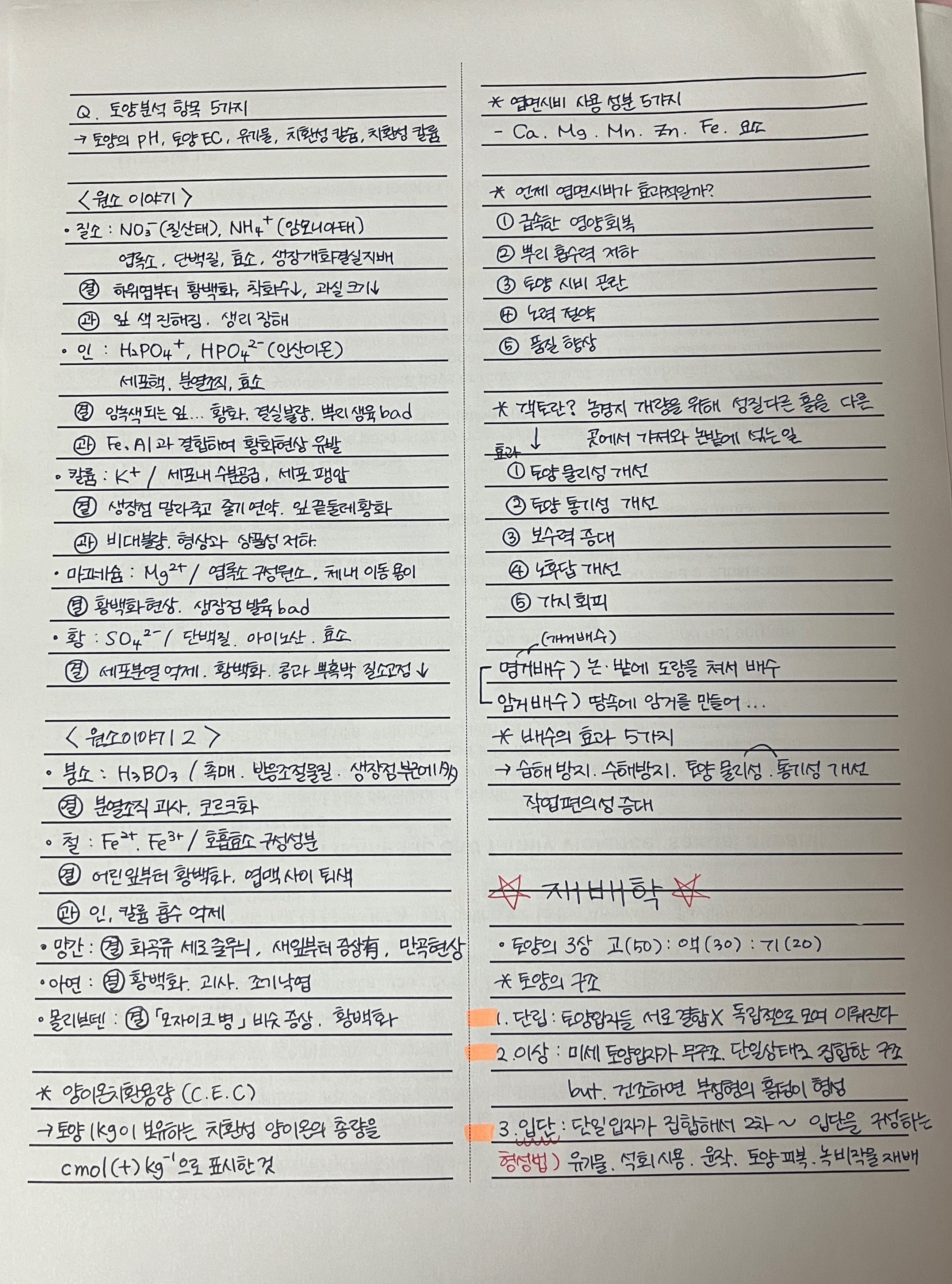 재배학은 향문사 책 참고하여 정리했고 부수적인 것들은 식보필기문제집 개념 참고했습니다