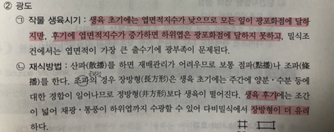 “조파의 경우 장방형은 생육초기에는 주간에 양분, 수분 등에 대한 경합이 일어나므로 정방형보다 생육이 떨어진다.”