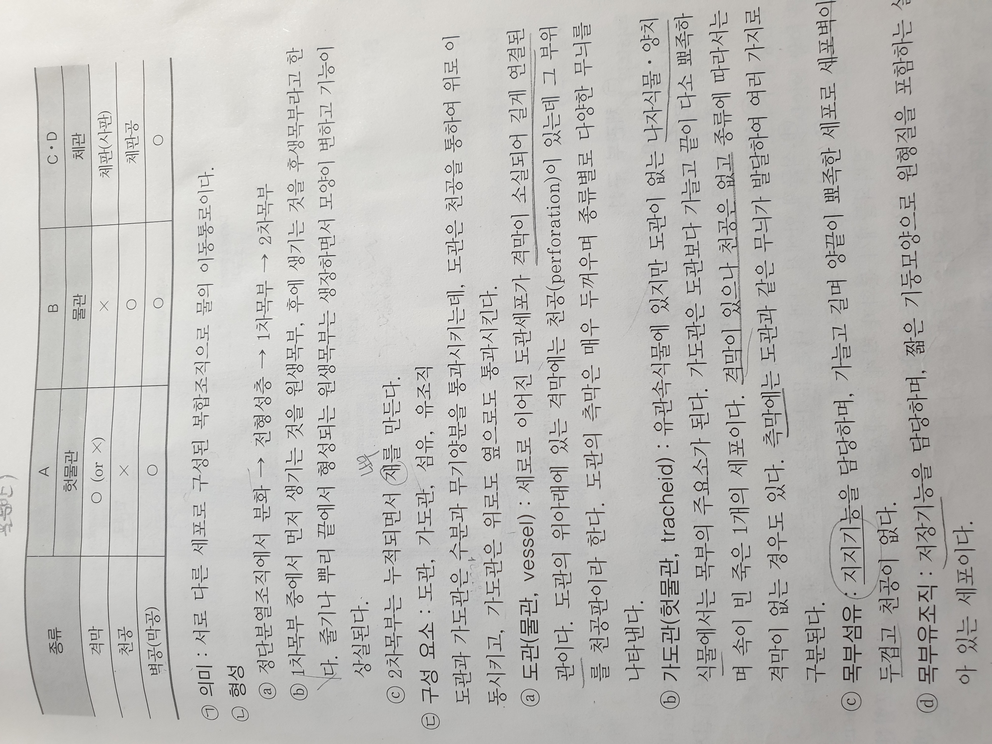 그리고 천공과 벽공역할이 둘다 물과 무기양분 운반인가요