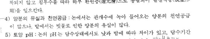 2번 사진 : 논토양은 양분의 공급이 많고 밭토양은 유실이 많다