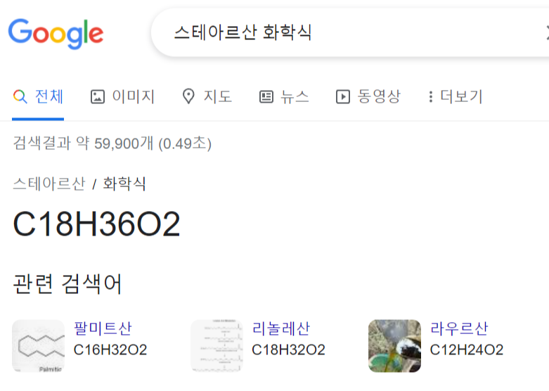 교재의 스테아르산의 화학식(C18H36O12)이 잘못되어 있는 것을 알 수 있습니다