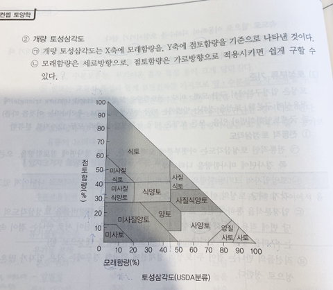 토성에 따라 모래와 점토함량을 추측이 가능하다는 걸 말하고 싶은 것 같습니다.