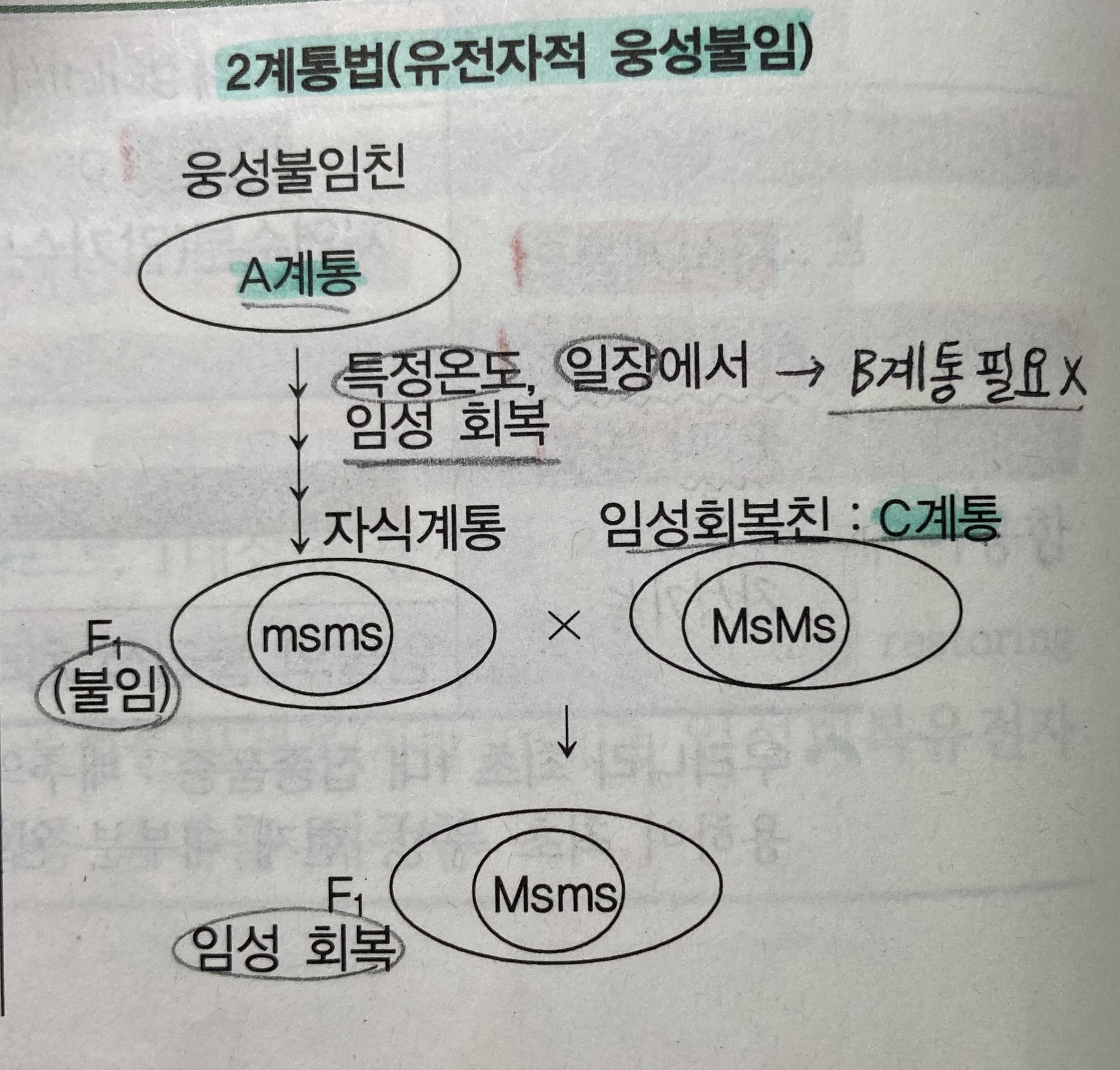 특정 온도와 일장에서 '임성을 회복'하는 환경감응형 웅성불임성이 왜 그림에서는 불임을 유지하는데 쓰이며 임성을 회복한다면서 임성회복친(C계통)이 왜 필요한가요?? 임성을 회복한다는게 가임이 된다는 것 아닌가요?