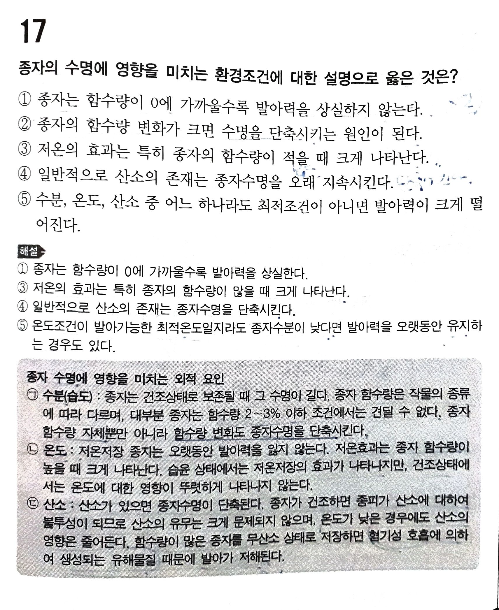 [작물생리학] 종자 수명 작성자양념감자|작성시간22.08.31|조회수155 목록 댓글 5 글자크기 작게가 글자크기 크게가 다른건 다 이해되는데, 5번이 이해가 가질 않아서요!! 5번도 맞는 문장 아닌가요??! 설명 부탁드리겠습니다... 꾸벅 다음검색 현재 게시글 추가 기능 열기 북마크 공유하기 신고 센터로 신고 댓글 댓글 5 댓글쓰기 답글쓰기 댓글 리스트 해당 댓글은 작성자와 운영진만 볼 수 있습니다. 해당 댓글은 작성자와 운영진만 볼 수 있습니다. 해당 댓글은 작성자와 운영진만 볼 수 있습니다. 해당 댓글은 작성자와 운영진만 볼 수 있습니다. 해당 댓글은 작성자와 운영진만 볼 수 있습니다. 댓글 전체보기