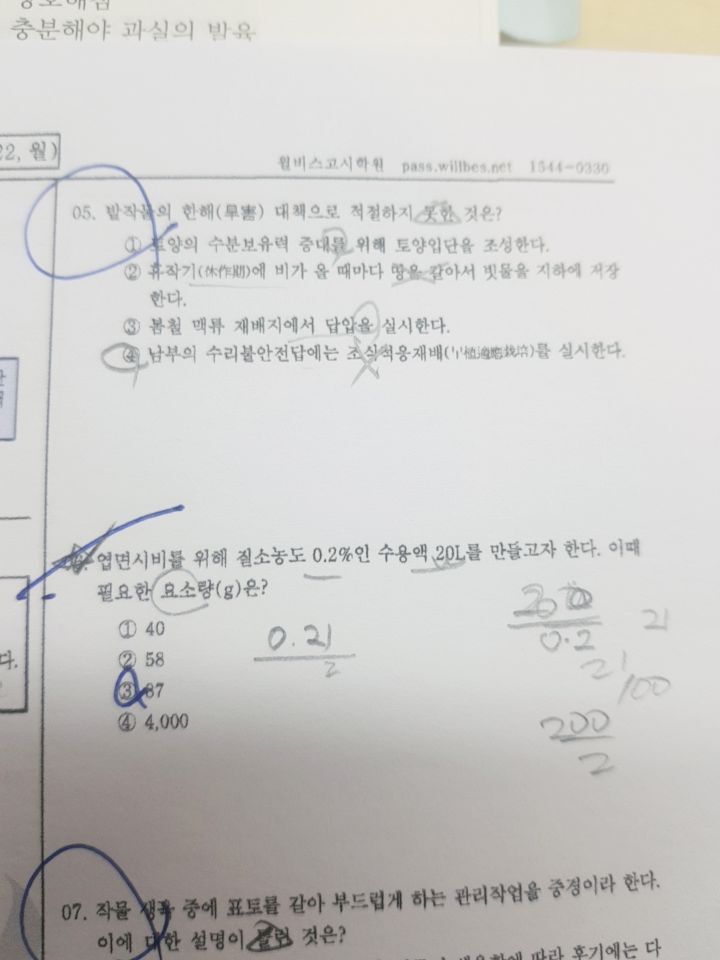 재배학 작성자취업을위하여|작성시간22.09.15|조회수138 목록 댓글 2 글자크기 작게가 글자크기 크게가 6번문제 계산 공식이랑 풀이 과정 설명해주실분 있나요ㅜㅜ 다음검색 현재 게시글 추가 기능 열기 북마크 공유하기 신고 센터로 신고 댓글 댓글 2 댓글쓰기 답글쓰기 댓글 리스트 작성자tnska | 작성시간 22.09.15 20리터에 0.2% 질소이면 20리터×0.2%=0.04kgㅡㅡ>1리터는 1kg으로 계산하고 %이므로 나누기1000.04kg g으로 환산 0.04×1000=40g요소에는 질소가 46%이므로 40/46% =40/0.46=약 87g 답댓글 작성자취업을위하여 작성자 본인 여부 작성자 | 작성시간 22.09.15 감사합니다!! 댓글 전체보기