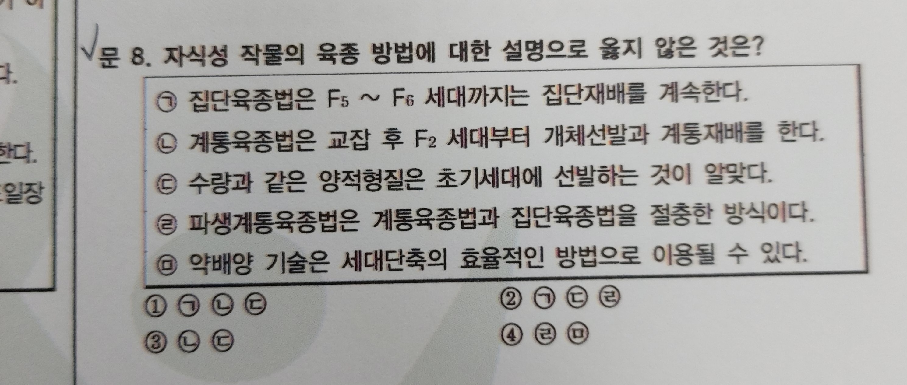재배 동모 육종방법 작성자tnska|작성시간22.09.30|조회수215 목록 댓글 0 글자크기 작게가 글자크기 크게가 이거 답이 3번이라고 하는데 오류인가요?? ㄱ도 틀린말 인데ㅠF5에서 집단재배. 개체선발F6에서 계통재배이렇게 교재에 나왔는데; 다음검색 현재 게시글 추가 기능 열기 북마크 공유하기 신고 센터로 신고 댓글 댓글 0 댓글쓰기 답글쓰기 댓글 리스트