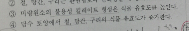 2) 그리고 금속이온이 킬레이트 형성하면 불용성이 되어서 식물이 이용못하는 것인지도 궁금합니다
