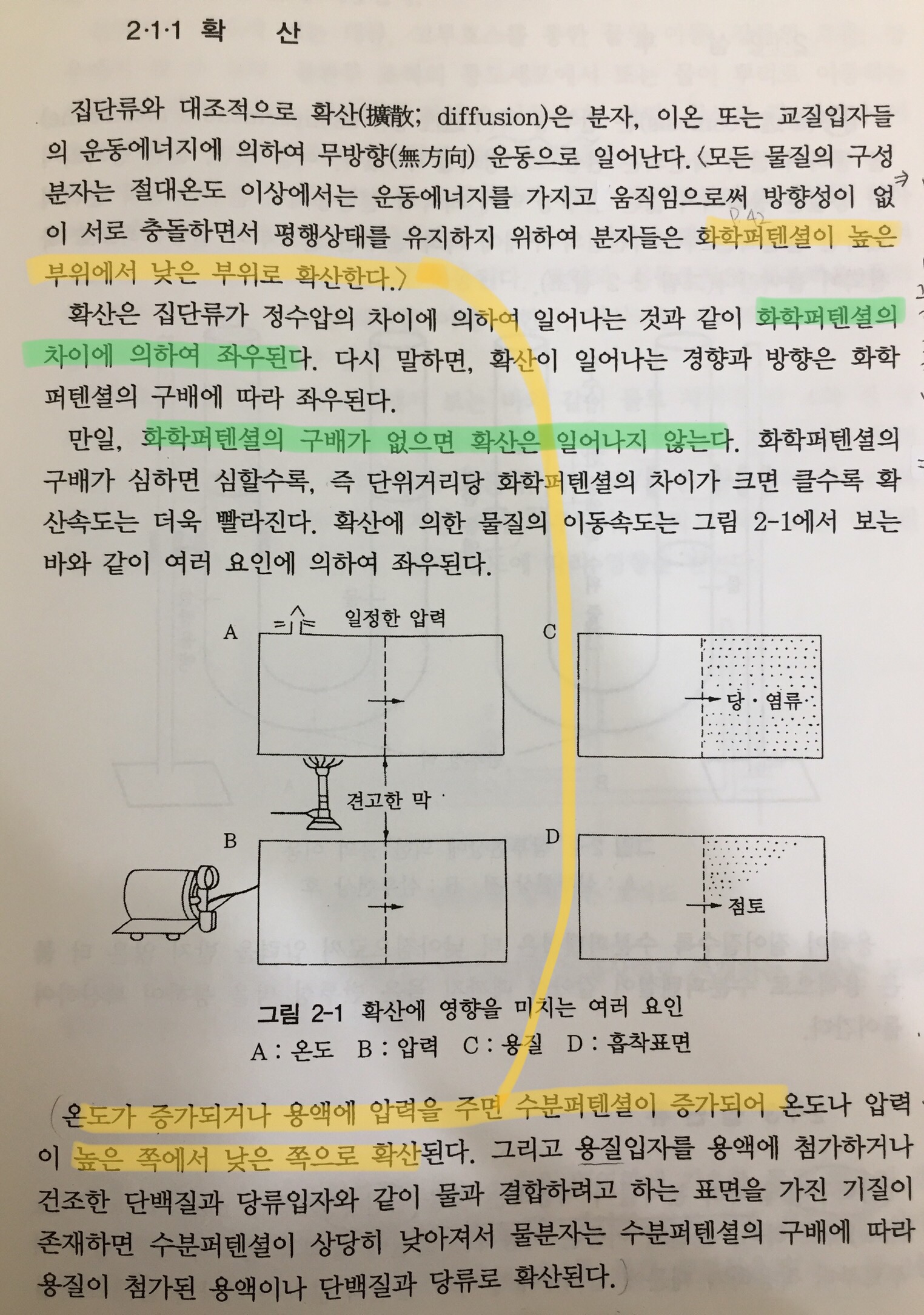 화학퍼텐셜 구배의 의미는 위와 비슷하나 대상을 바라보는 시점이 화학물질이기 때문에 화학퍼텐셜이라구한거에요!