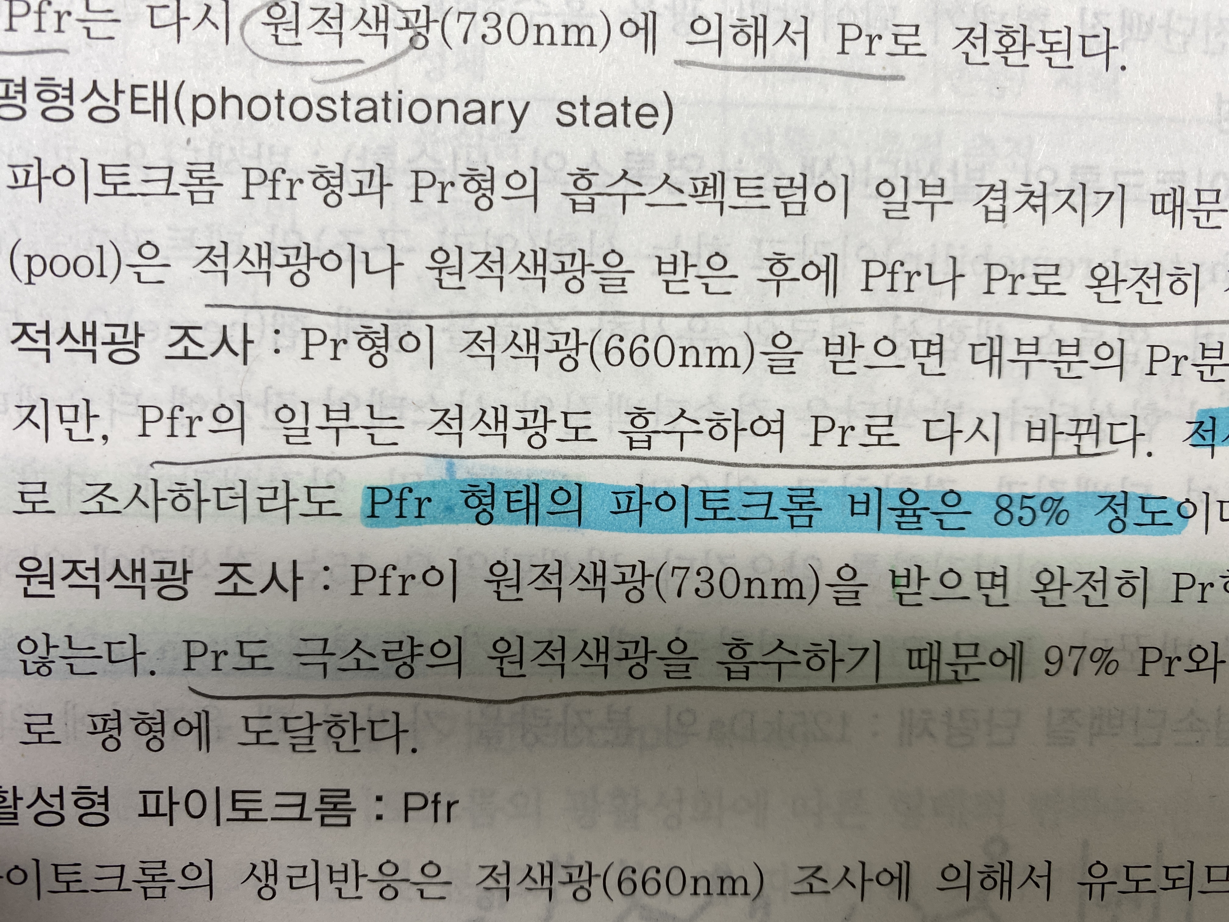 파이토크롬에 대한 질문입니다! 작성자부산귀요미|작성시간21.03.13|조회수290 목록 댓글 2 글자크기 작게가 글자크기 크게가 본문에 Pfr의 일부는 적생광을 흡수해서 Pr로 바뀐다는데 Pfr은 원적생광을 흡수해야 Pr이 되는거로 아는데 왜 적색광을 흡수해서 Pr이 되는건가요ㅠ 다음검색 현재 게시글 추가 기능 열기 북마크 공유하기 신고 센터로 신고 댓글 댓글 2 댓글쓰기 답글쓰기 댓글 리스트 작성자Vespa | 작성시간 21.03.13 원칙적으로는 원적색광만 흡수하는게 맞지만 아주 일부는 적생광도 흡수해 형태를 바꾸니 100% pfr만 존재하거나 할 순 없다는 뜻이에요 답댓글 작성자부산귀요미 작성자 본인 여부 작성자 | 작성시간 21.03.13 아아 그냥 문장 그대로 적생광을 받아도 Pr로 바뀐다는 거군요! 댓글 전체보기