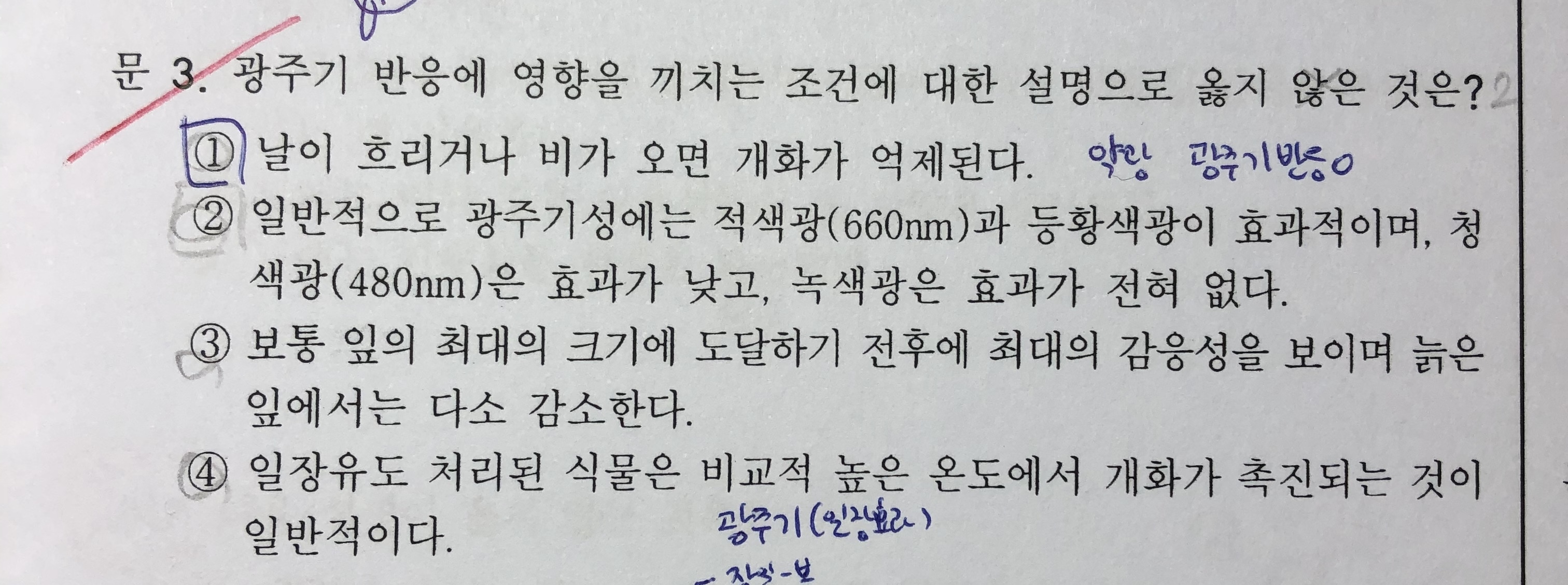 광주기 반응 작성자START|작성시간20.09.30|조회수357 목록 댓글 1 글자크기 작게가 글자크기 크게가 약한 조명으로도 장일식물 개화유도와 단일식물 개화억제가 일어나니까 1번문장도 맞는거 아닌가요 다음검색 현재 게시글 추가 기능 열기 북마크 공유하기 신고 센터로 신고 댓글 댓글 1 댓글쓰기 답글쓰기 댓글 리스트 작성자초코먼지 | 작성시간 20.10.01 제가 외우고 있는거로는저 조건이 약광조건인데 약광에서도 광주기반응이 일어난다고 컨셉에 기술되어있어요! 댓글 전체보기