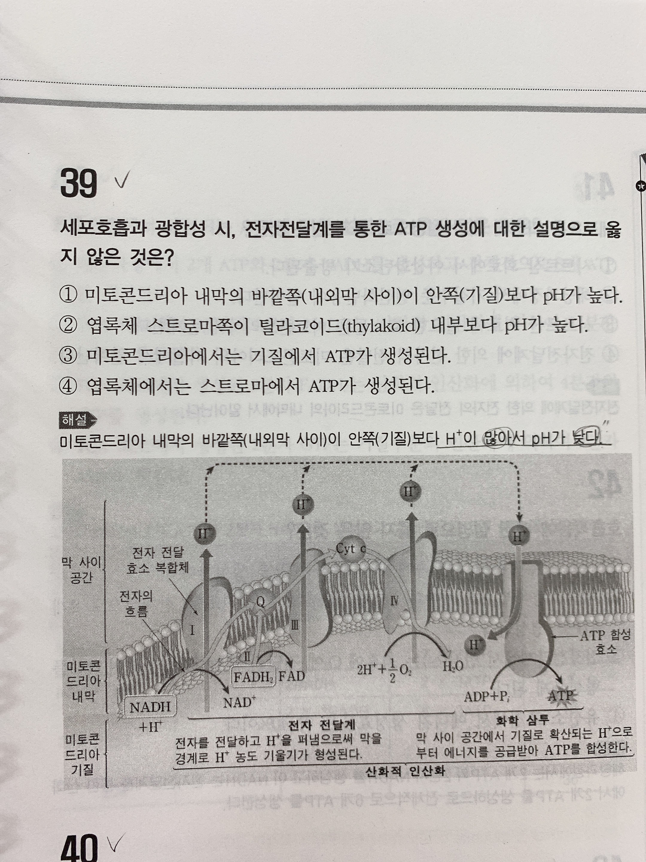 작성자지나니 작성시간 21.10.10 전자전달계에서 atp가 생성되는데 위치가 틸라코이드 내부에서 스트로마로 수소가 확산되어서 답이 스트로마인거. 세포호흡과 방향이 반대.