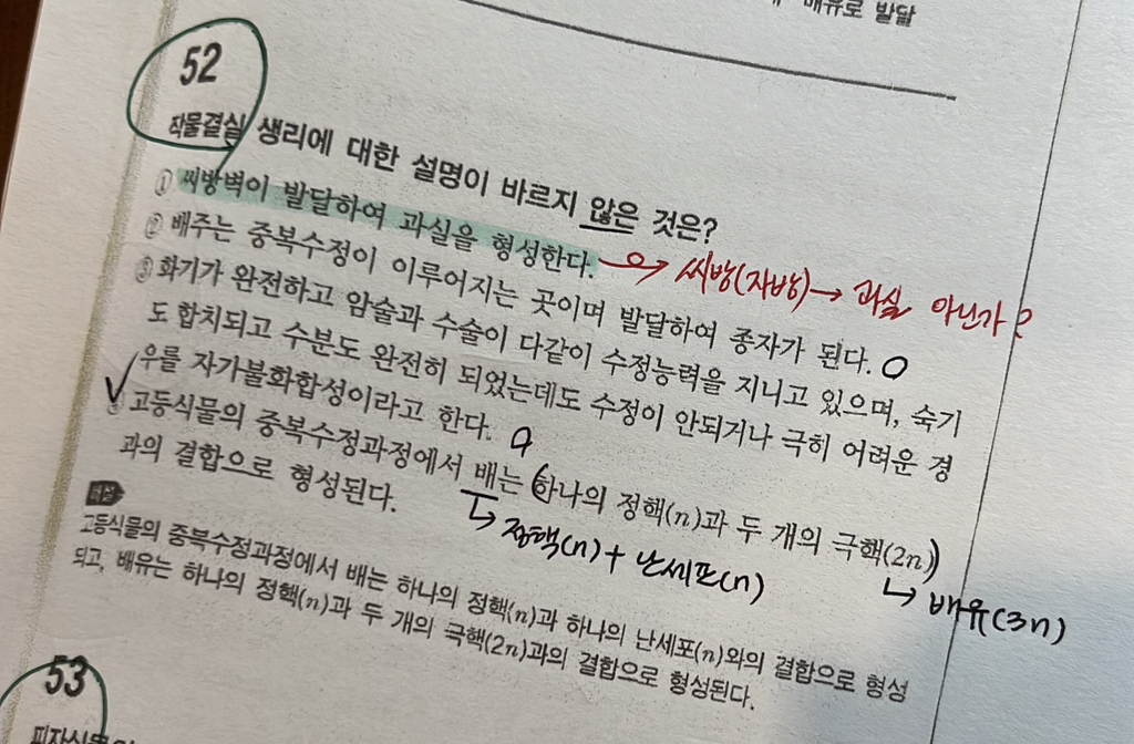 씨방벽 발달 관련 질문 작성자능소화:)|작성시간24.08.07|조회수206 목록 댓글 2 글자크기 작게가 글자크기 크게가 1번 선지에 씨방벽이 발달하면 과실을 형성한다고 되어있는데 씨방벽이 발달하면 과피가 된다고 알고있어서요! 넓은 의미에서 과실이라고 보는걸까요? 다음검색 현재 게시글 추가 기능 열기 북마크 공유하기 신고 센터로 신고 댓글 댓글 2 댓글쓰기 답글쓰기 댓글 리스트 작성자농업직신입생 | 작성시간 24.08.07 네 저도 넓게(?)씨방벽이 씨방을 포함하니깐 그렇겠구나 생각하고 풀었습니다 일단 4번이 너무 오답이에요 답댓글 작성자능소화:) 작성자 본인 여부 작성자 | 작성시간 24.08.07 넵 감사합니당:) 댓글 전체보기