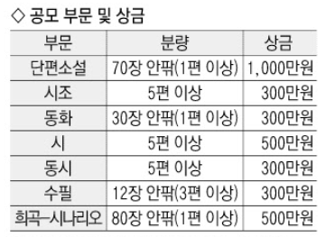 -당선작 없는 가작의 경우 상금은 당선작의 50%입니다.(전 부문)